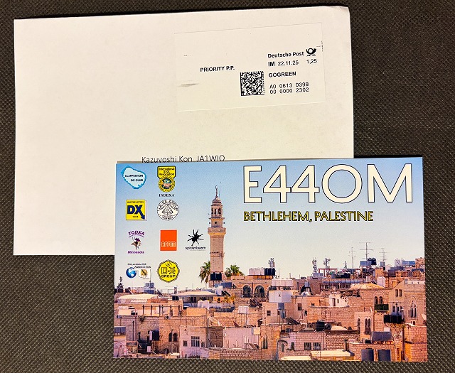E44OM BETHLEHEM, PALESTINE のQSOカードが到着した(2025年09月19日の交信)。