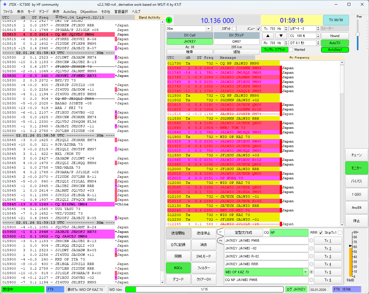 結局、今年もFT8。17mbはどうかな? ワッチしてみたら、DXがいて、国内QSOはちょっとなぁ。。という雰囲気。20mbはもちろんDXばっかり、7.041MHzは国内QSOパーティで劇混み。。むり。