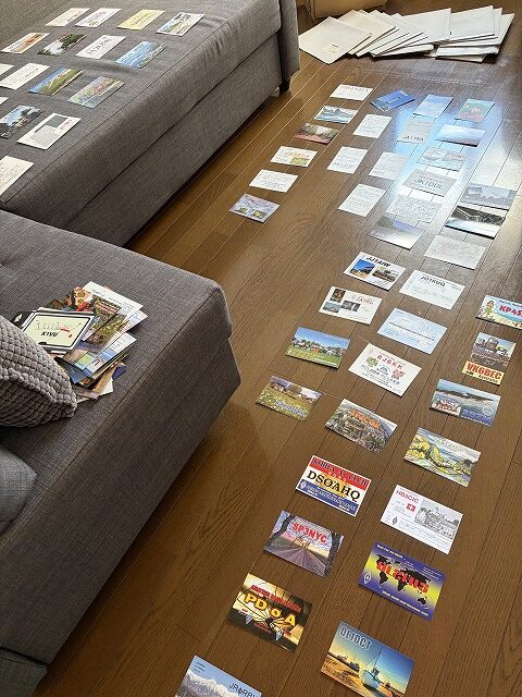 2日間で何回繰り返したことか。。。写真の奥に写っているのは、QSLカードが入っていた大型封筒。