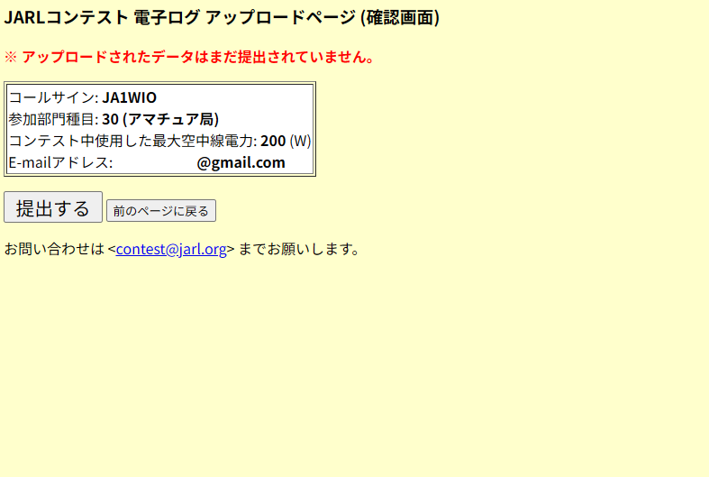 出力されたファイルをJARLのhttps://contest.jarl.org/upload/ からファイルを選択してアップロード。