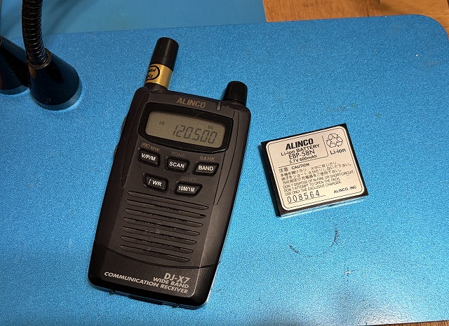 旅行の時なんか、気が向いた時に持って行って使っていた受信機、DJ-X7のバッテリーが劣化(膨らんでしまった)して、ケースが歪んでしまい、それ以来、使ってなかった。